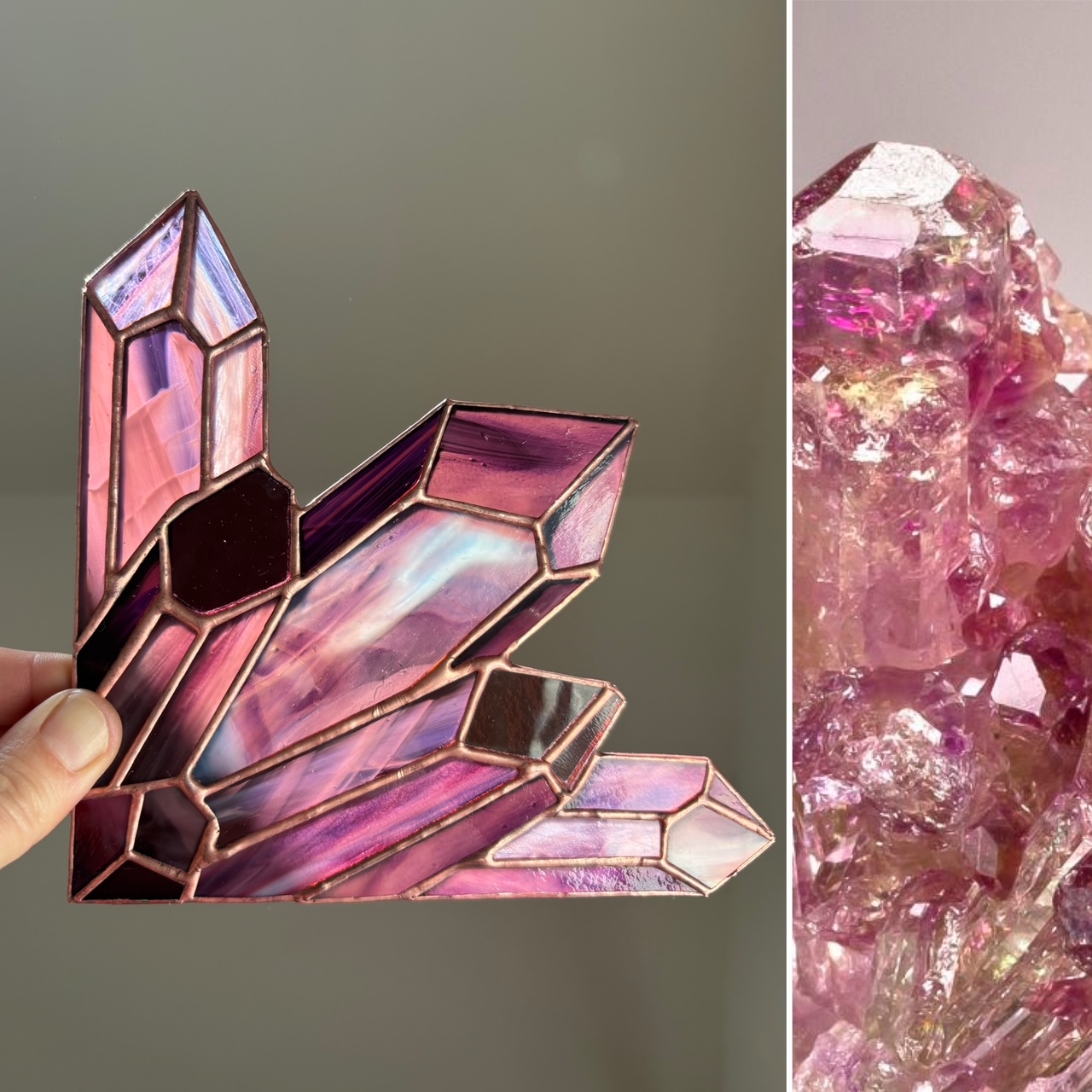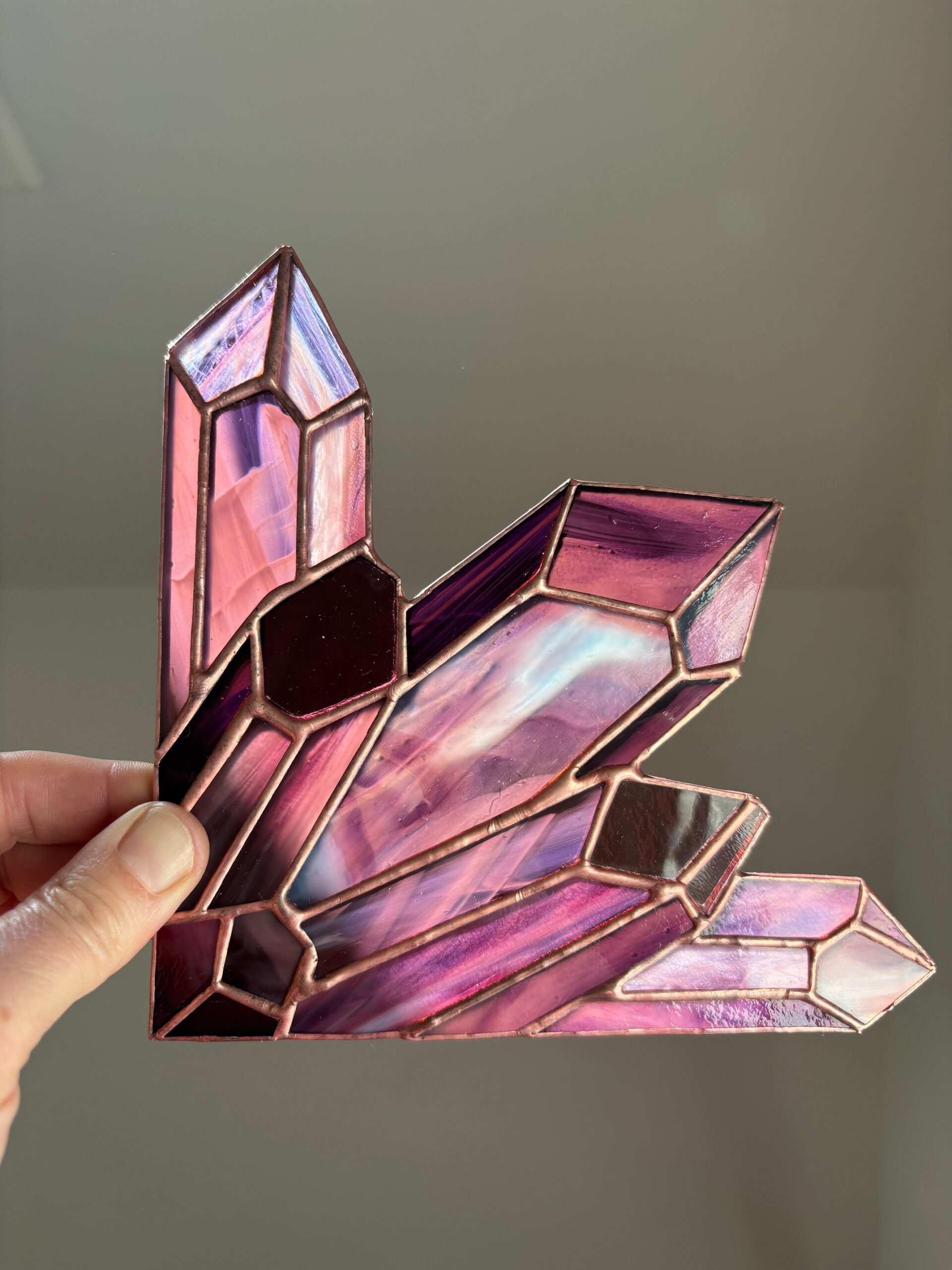 Kristal als raamdecoratie van glas, geïnspireerd op roze Amethyst en Robijn.